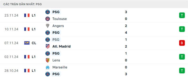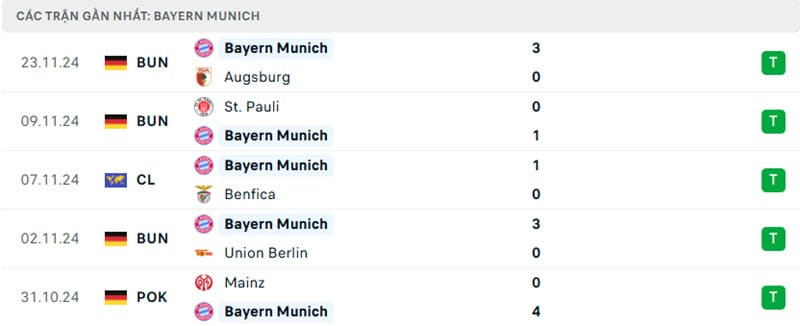 Phong độ gần đây Bayern Munich vs PSG