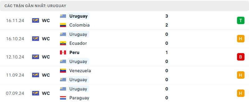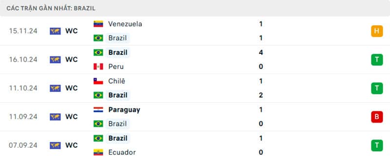 Phong độ gần đây Brazil vs Uruguay