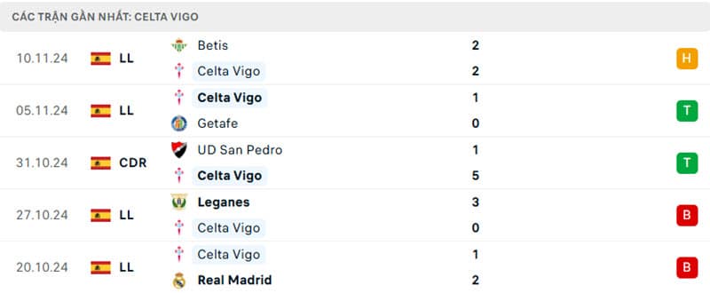 Celta Vigo đã trải qua một tháng 10 khó khăn, với chỉ một chiến thắng trong tám trận gần nhất. Dù mở đầu tháng 11 bằng chiến thắng 1-0 trước Getafe, họ đã không thể duy trì phong độ này và kết thúc tháng 10 với thất bại nặng nề 0-3 trước Leganes. Trận hòa 2-2 trước Real Betis trước đợt nghỉ quốc tế cho thấy Celta vẫn có khả năng cạnh tranh, nhưng những sai lầm ở hàng phòng ngự đã khiến họ bỏ lỡ cơ hội giành trọn ba điểm.