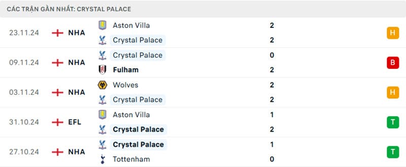 Dù đã có những chiến thắng quan trọng trước Tottenham và Aston Villa, Crystal Palace đã không thắng trong 3 trận Premier League gần nhất. Họ cần phải tìm lại mạch chiến thắng để thoát khỏi khu vực xuống hạng.