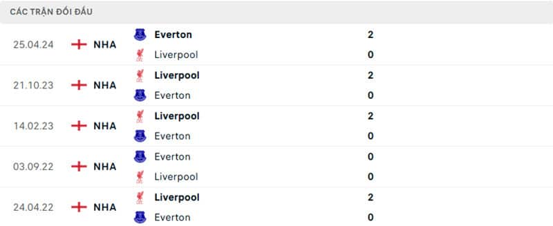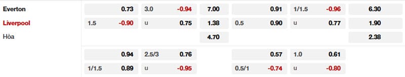 Bảng tỷ lệ kèo Everton vs Liverpool