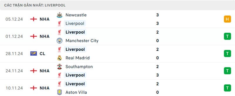 Trong khi đó, Liverpool vẫn đang là ứng viên hàng đầu cho chức vô địch Premier League, mặc dù họ vừa trải qua một trận hòa kịch tính 3-3 với Newcastle. Trận đấu này đã khiến khoảng cách với đội đứng nhì bảng thu hẹp xuống còn 7 điểm. Đội bóng của huấn luyện viên Arne Slot đã thể hiện sức mạnh tấn công ấn tượng, nhưng hàng thủ của họ lại đang gặp vấn đề khi để thủng lưới từ 2 bàn trở lên trong 4 trận sân khách gần nhất.