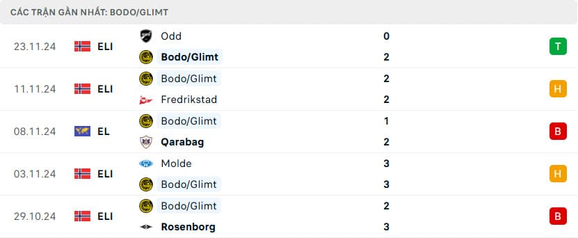 Mặc dù đã thắng 2-0 trước Odd ở trận gần nhất, nhưng Bodo Glimt đã chỉ giành được 1 chiến thắng trong 7 trận gần đây. Họ đang có thành tích tốt hơn khi thi đấu trên sân khách, với chuỗi 5 trận bất bại. Điều này cho thấy rằng dù gặp khó khăn ở nhà, đội bóng Na Uy vẫn có thể là một đối thủ khó chịu khi rời xa tổ ấm.