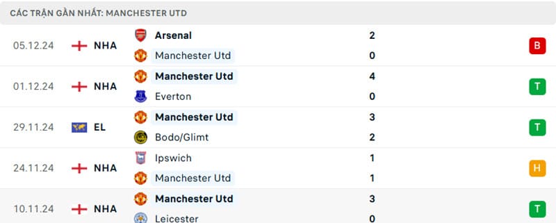 Phong độ gần đây Man Utd vs Nottingham
