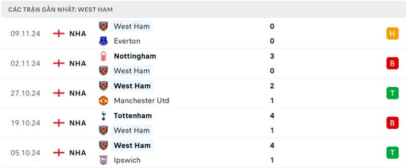 Về phía West Ham, đội bóng này đang trải qua giai đoạn khó khăn dưới thời HLV Julen Lopetegui. Đội bóng London chỉ giành được 1 chiến thắng trong 4 trận gần nhất tại Premier League và đặc biệt thi đấu kém cỏi trên sân khách. “Búa tạ” đã thua 3 trong 4 trận gần nhất phải làm khách, trong đó có hai thất bại liên tiếp trước Tottenham và Nottingham Forest với 7 bàn thua.
